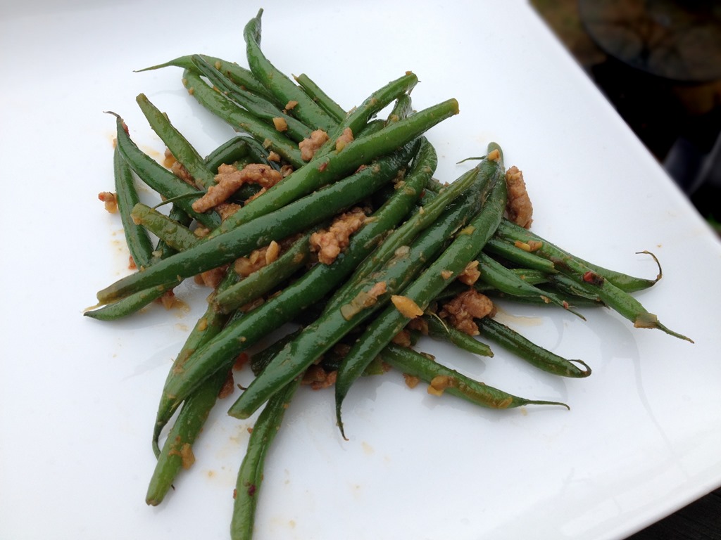 These beans are slightly spicy, flavored with Szechuan peppercorns, a good dose of garlic, ginger and chili paste. Szechuan peppercorns are actually less spicy than regular black pepper or chili peppers. They have a slightly lemony taste and leave your tongue with an interesting tingly, slightly numb sensation.
