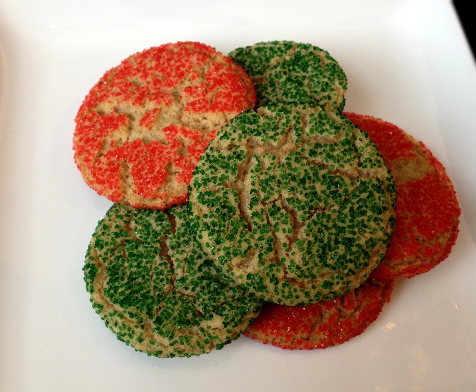 Snickerdoodles are always a favorite cookie around here. Jazz them up for Christmas by rolling them in red and green sugar.