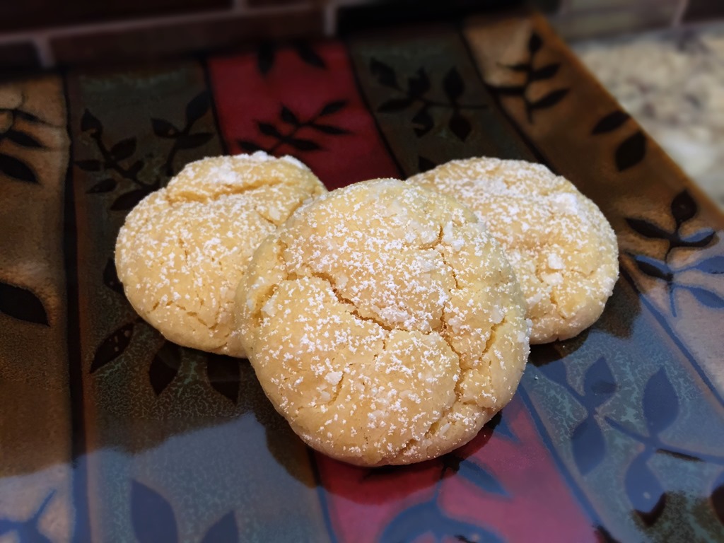 Place powdered sugar in a small bowl. Roll dough into balls (about 1” in diameter) and then roll in powdered sugar. Place on baking sheets. Bake for 10-12 minutes. Cool on baking sheets for 2 minutes, and then remove to a wire rack to cool completely.