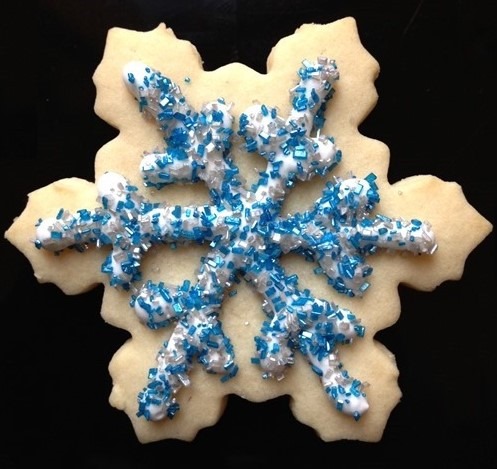 For Snowflakes: Use a thick open circle decorator tip to pipe thick lines onto each snowflake. Sprinkle cookie with sanding sugar or sprinkles immediately after piping lines (on each cookie). Icing will harden quickly.