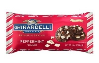 You can use any variety of peppermint bark, but I really like these thin chunks that are sold in bags, like chocolate chips.
