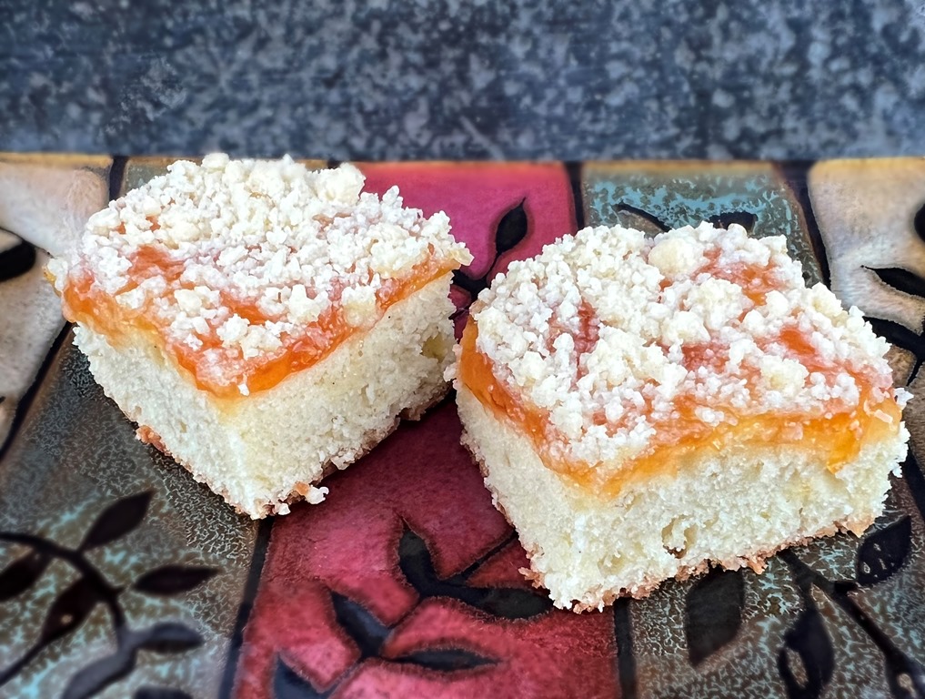 An easy to make bar cookie. A shortbread crust is topped with sweet and tangy apricot jam and then topped with shortbread streusel.