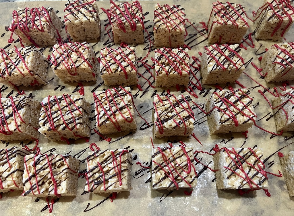 Optional Decoration: Cut into squares and place on a piece of parchment or waxed paper. Drizzle with additional caramel sauce (heat slightly if mixture is too thick) or drizzle with melted chocolate and colored candy melts.