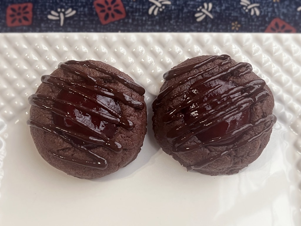 For the chocolate raspberry lover! A chocolate cookie filled with raspberry jam and drizzled with dark chocolate.