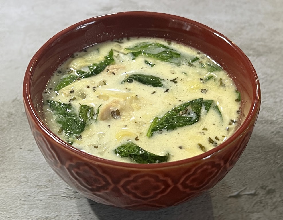 When spring is inconsistent in its warm sunny days, this creamy chicken soup with spinach and artichokes, together with some homemade bread, make a perfect light supper.