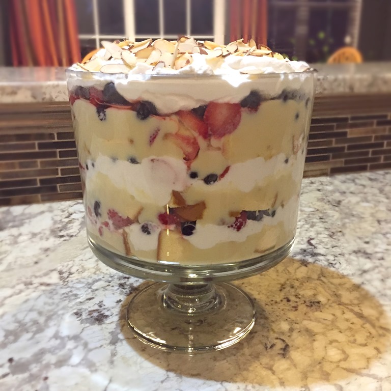 This dessert is often the “birthday cake” chosen by my kids. With layers of cake, custard, fruit, and whipped cream, it is definitely a crowd pleaser.