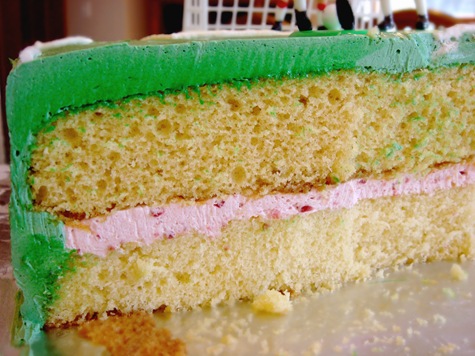 Yield: frosting for a two-layer round cake. For the cake above which is a double layer 11×15” rectangle, double the recipe.
