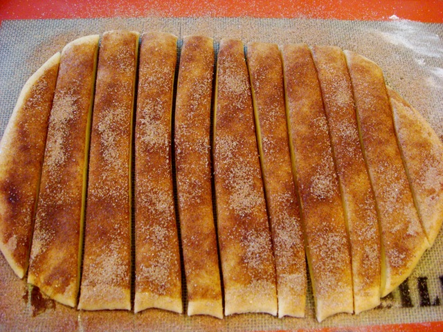 Lightly butter rimmed baking sheets or 9”x13” pans. Mix brown sugar, white sugar and cinnamon in a small bowl.