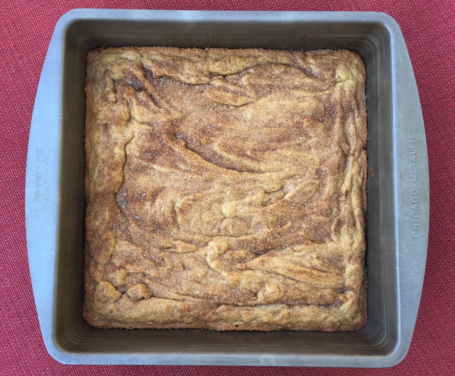 These bar cookies have the hint of apple cider tanginess with a crackly cinnamon top.