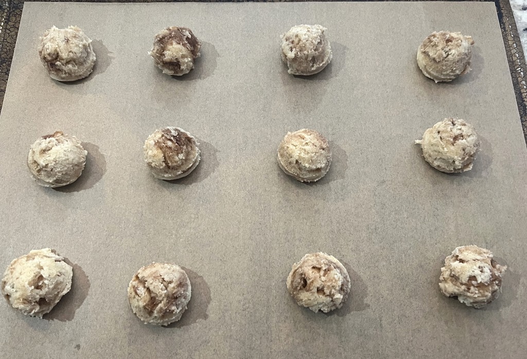 A drop cookie with delicious cinnamon brown sugar swirled throughout the dough.