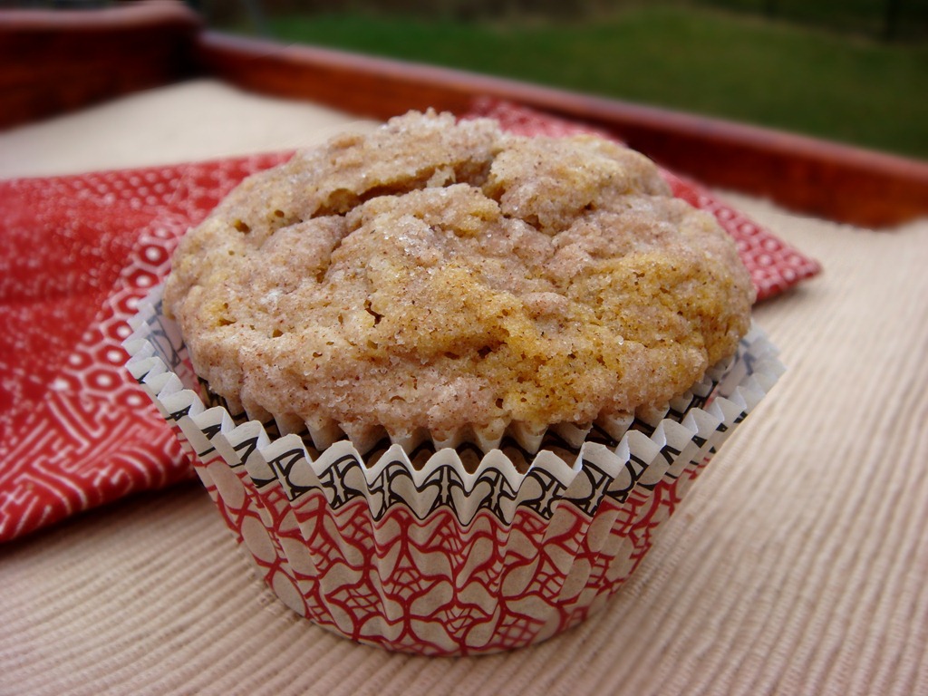A crunchy, sugary topping on a pumpkin-pie-spiced-cheesecakey muffin. Now all we need is some hot cocoa.