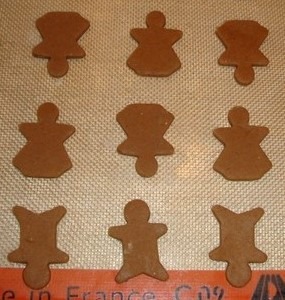 Chill dough for 1 hour. Roll to about 1/8” and cut into small gingerbread men and angels (or ninja-bread men).