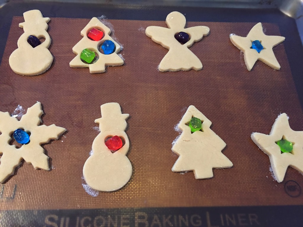 After baking, let the cookies completely cool and the candy window centers harden before removing from baking sheet.