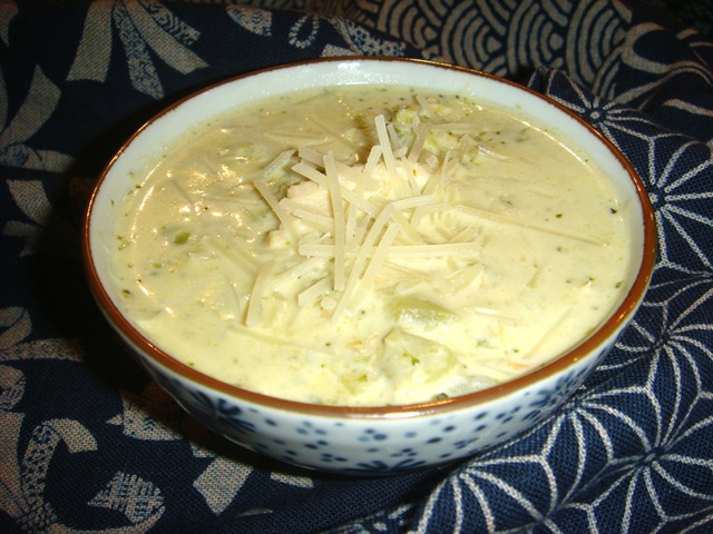 If you are starting with raw chicken, boil chicken until tender, remove from broth (do not drain broth) and chop. Place in 3-qt casserole dish. Cook potatoes and carrot in remaining chicken broth (or water if not starting with raw chicken) until potatoes are just tender; drain. Add potatoes and carrots to casserole dish with chicken and chopped zucchini. Add frozen beans, corn, broccoli and/or peas (do not thaw).