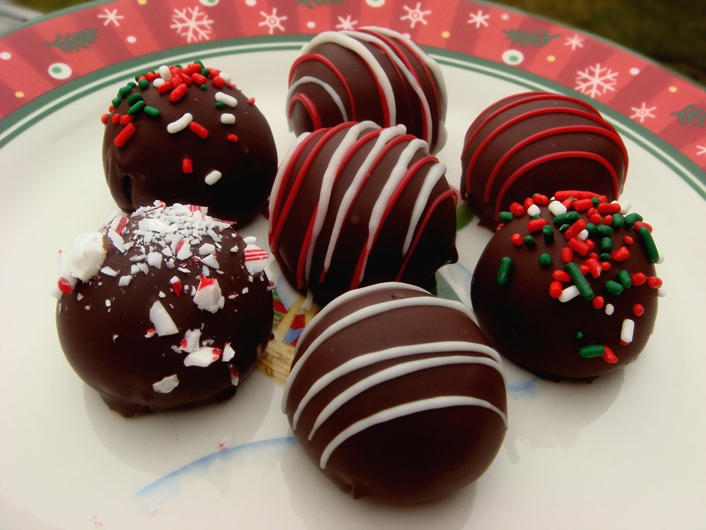 Melt dipping chocolate. Using a fork, dip truffles in the melted chocolate. Use a second fork to push the truffle onto waxed paper or parchment paper lined baking sheets. Sprinkle with crushed Oreos, candy canes or sprinkles while chocolate coating is still wet. **