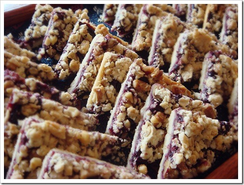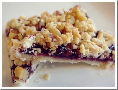 An almond flavored blondie cookie topped with a raspberry swirled cheesecake batter.