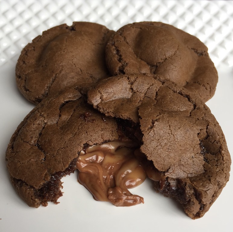 The Rolo Cookies have a Rolo candy nestled inside of the chocolate dough. Eat them warm for a delicious gooey caramel cookie.
