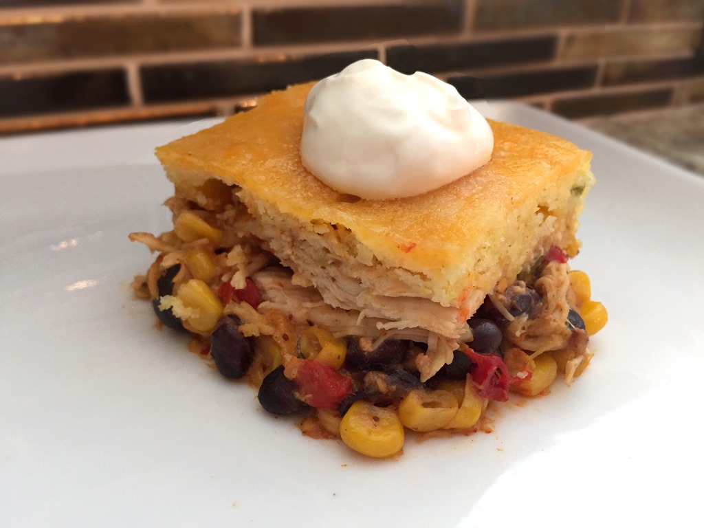 Spoon cornbread mixture over hot chicken mixture. Spread with a spatula to cover chicken mixture. Return to oven and bake, uncovered, for an additional 30 minutes or until cornbread topping is cooked through (test center with a toothpick). Cover loosely with foil if cornbread browns too quickly. Sprinkle with remaining cheese. Bake 2-3 minutes, or until melted. Let stand 10 minutes before serving.